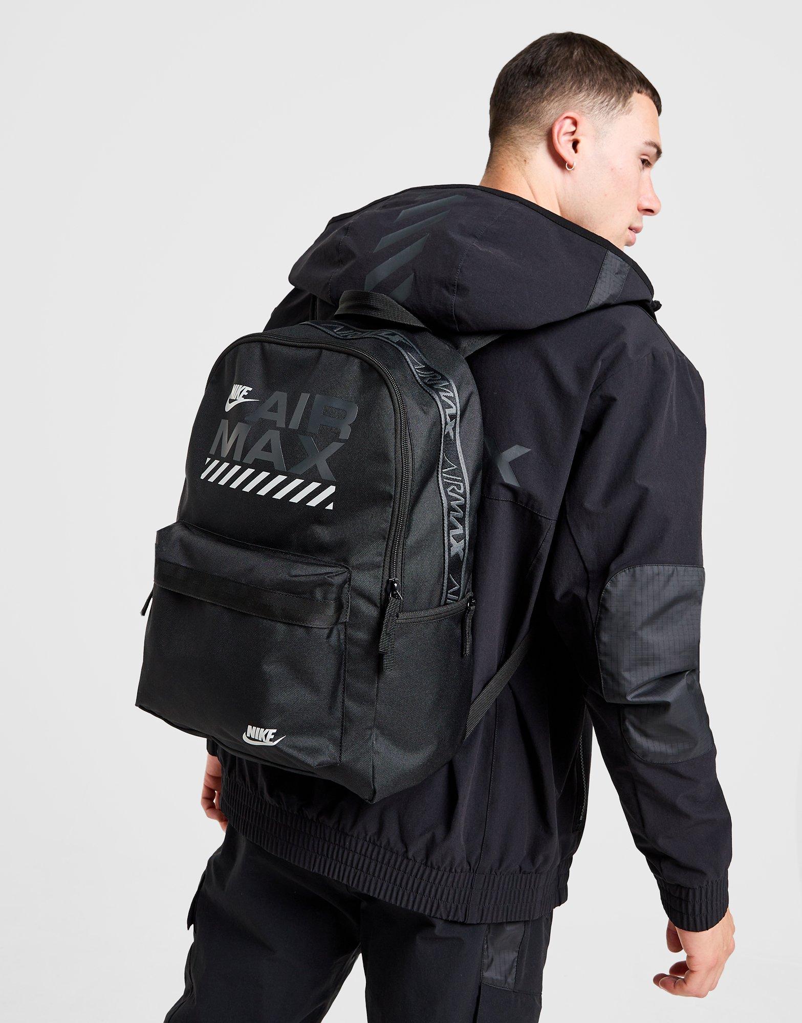 Saugok savo daiktus šioje Nike Air Max Heritage kuprinėje. Šis juodos spalvos krepšys pasiūtas iš glotnaus poliesterio, kad būtų naudojamas ilgai. Jame yra pagrindinis skyrius su užtrauktuku, nešiojamojo kompiuterio dėklas ir užtrauktuku užsegama priekinė kišenė smulkesniems daiktams. Kuprinė turi paminkštintus, reguliuojamus dirželius, kad būtų patogu nešti, ir rankeną. Su laikikliu vandens buteliui, baigtas klasikiniu Nike Air Max logotipu. Skalbti rankomis.| Išmatavimai : 43 x 30.5 x 15 cm)
